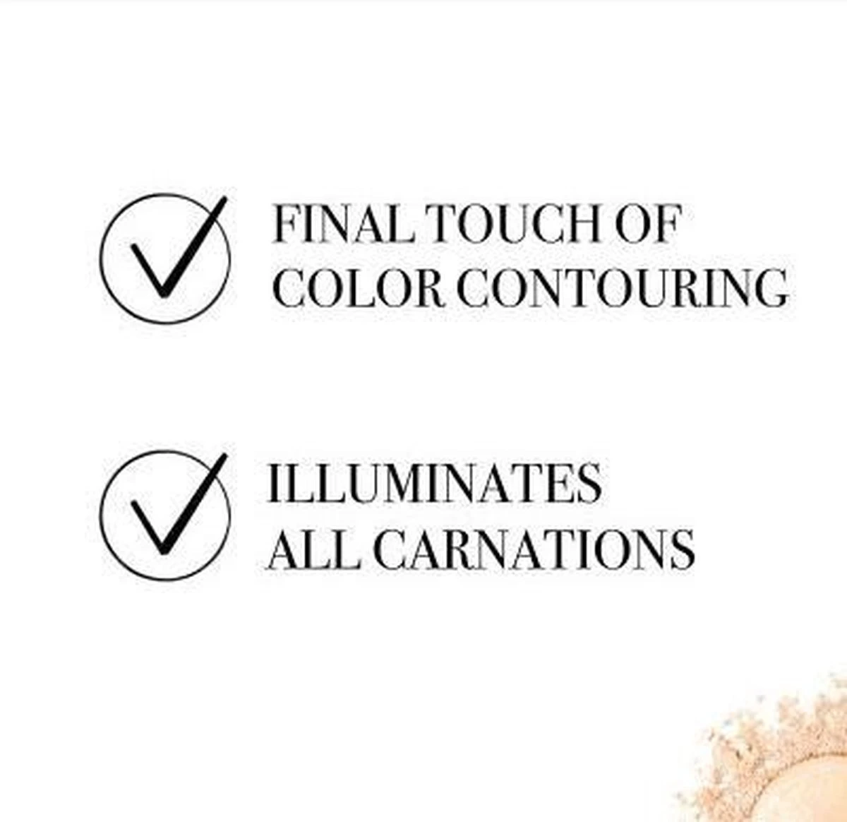 | Ingrediënten | SYNTHETIC FLUORPHLOGOPITE / TALC / ZEA MAYS (CORN) STARCH / HECTORITE / PARFUM/FRAGRANCE / PENTYLENE GLYCOL / CAPRYLYL GLYCOL / MAGNESIUM ALUMINUM SILICATE / VINYL DIMETHICONE/METHICONE SILSESQUIOXANE CROSSPOLYMER / TIN OXIDE / HYDROXYCITRONELLAL / CINNAMYL ALCOHOL / EUGENOL / BENZYL SALICYLATE / LINALOOL / ALPHA-ISOMETHYL IONONE / CITRONELLOL / GERANIOL / AMYL CINNAMAL / HEXYL CINNAMAL / COUMARIN / EVERNIA PRUNASTRI (OAKMOSS) EXTRACT / BENZYL BENZOATE / LIMONENE / [May Contain/Peut Contenir/+/-:TITANIUM DIOXIDE (CI 77891) / MICA / IRON OXIDES (CI 77491 / CI 77492 / CI 77499)] |