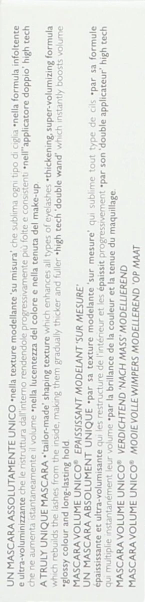 Collistar Mascara Volume Unico® is een mascara die de lengte en krul van de wimpers benadrukt. De mascara geeft onmiddellijk volume aan de wimpers, maakt deze voller en modelleert ze. De mascara is geformuleerd met verschillende wassen die ieder een ander smeltpunt hebben waardoor je de mascara meerdere malen kunt aanbrengen tot je de gewenste krul, lengte of volume hebt bereikt. De mascara is verrijkt met een speciaal complex van peptiden en pantenol die de structuur van de wimpers van binnenuit wijzigt waardoor ze geleidelijk aan voller en dikker worden. De mascara komt met een high tech ‘dubbel borsteltje’ dat zorgt voor meer volume en de mascara perfect verdeelt over de volledige lengte van de wimpers.