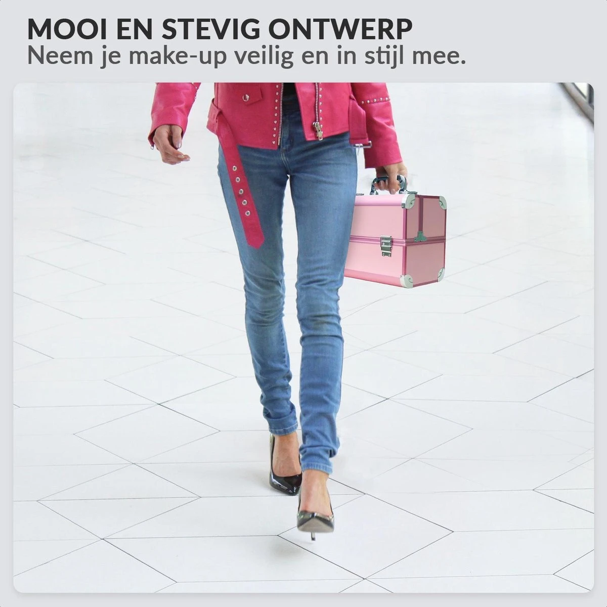 Deze uitklapbare make-up koffer met 5 compartimenten, een slot en een handvat is de uitkomst voor het opbergen van jouw waardevolle make-up. Door de compartimenten is er veel ruimte en blijft het toch overzichtelijk. De make-up koffer is ook stevig en daardoor makkelijk ergens mee naartoe te nemen.