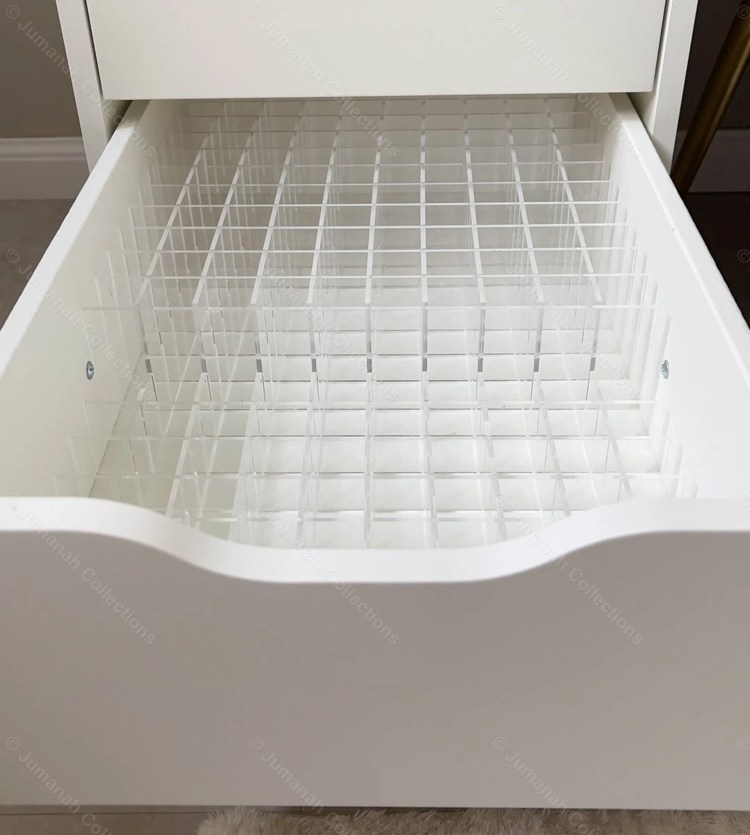 Met de makeup ladeverdeler voor de Ikea Alex 5 laden zien jou lades er weer netjes en georganiseerd uit! Ze zijn aan te passen naar wens. Dit is een must voor alle makeup liefhebbers die al hun mooie makeup het plekje willen geven dat ze verdienen.