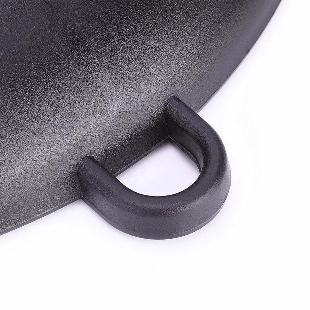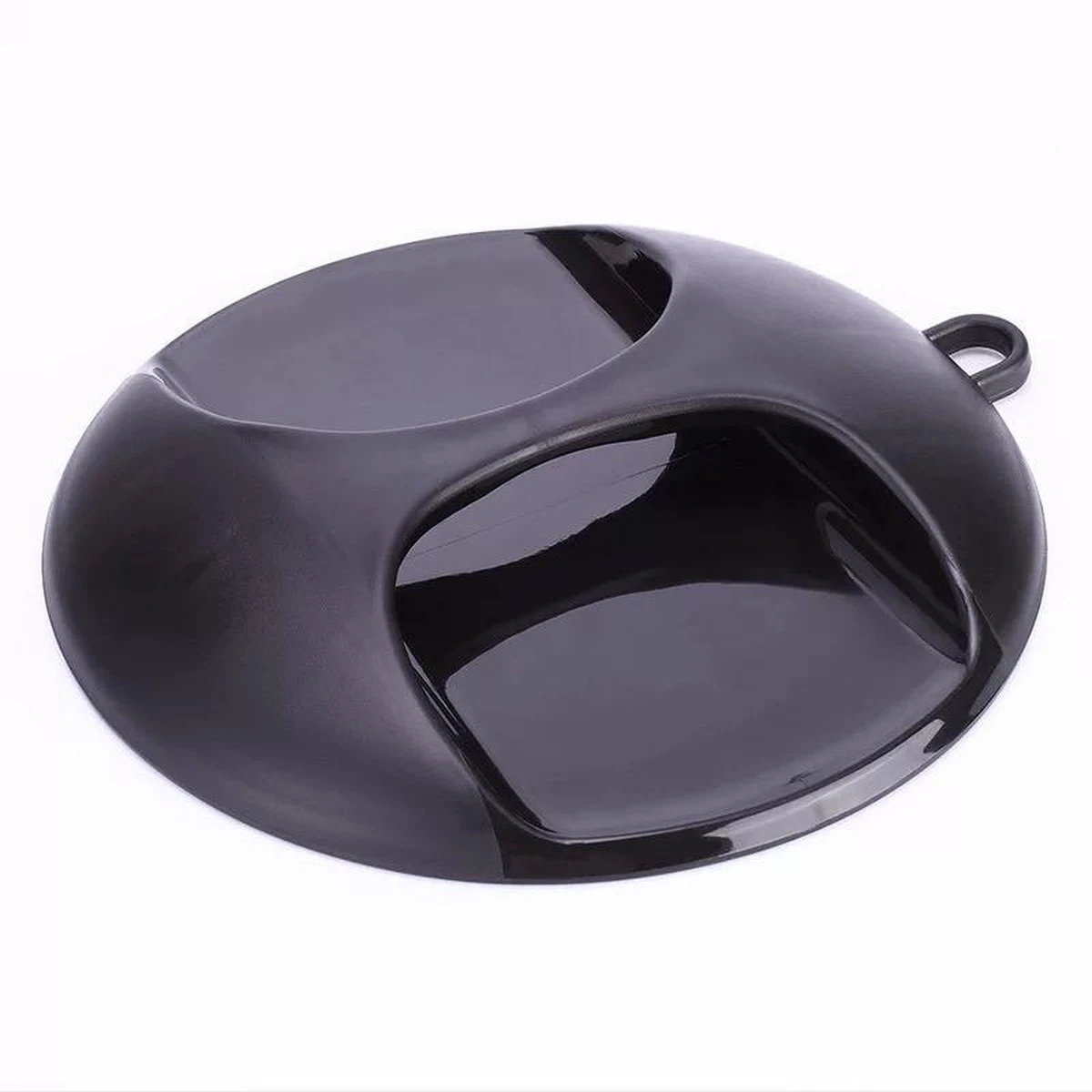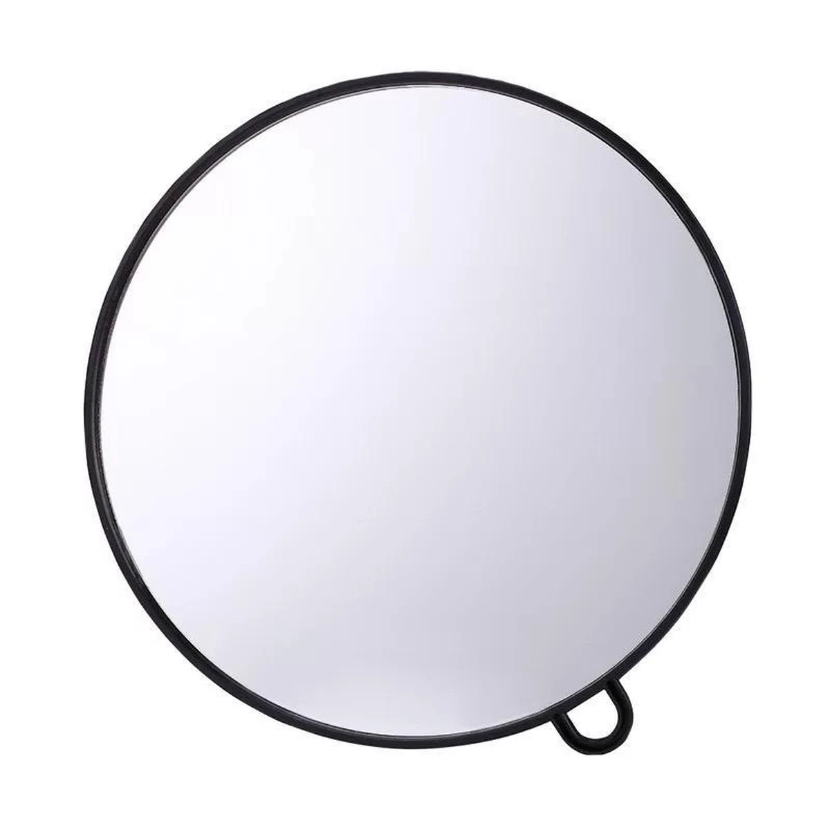 Deze kappersspiegel is een ronde spiegel met handgreep in de kleur zwart.